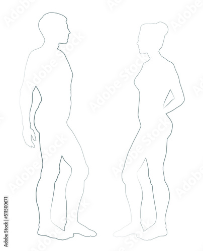 © Marina, Fototapeta premium Male and female stands sideways. Vector drawing