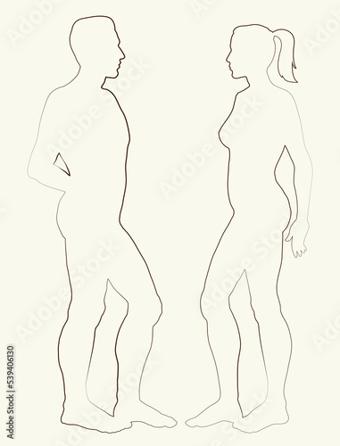 © Marina, Fototapeta premium Male and female stands sideways. Vector drawing