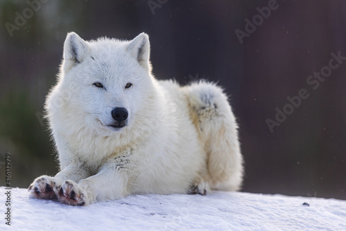 Obraz premium male Arctic wolf (Canis lupus arctos) resting in the snow