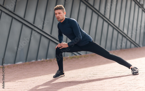 Fototapeta premium Male athlete doing warm up exercises. Sport, workout, healthy lifestyle concept.