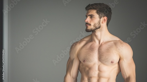 Fototapeta premium Male Athlete Posing with Strong Muscles in Studio Light, Dynamic portrayal of...