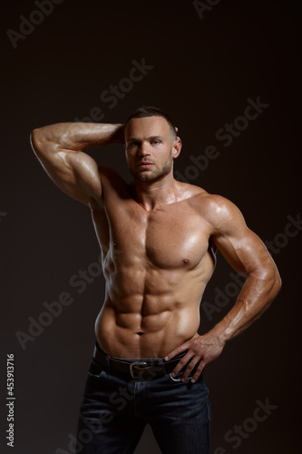 © Nomad_Soul, Naklejka premium Male athlete with muscular body poses in studio