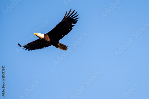 © Harrison, Fototapeta premium Male bald eagle in flight against a bright blue sky