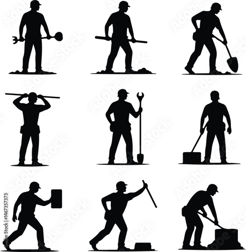© logodesign11, Obraz premium Male Body Posing Silhouette Set | Human Figure Art Poses Man Body Pose Vector Silhouettes | Fitness & Model Reference