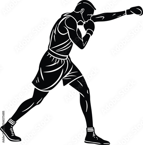 © Vector Design, Fototapeta premium male boxer throwing punch black silhouette