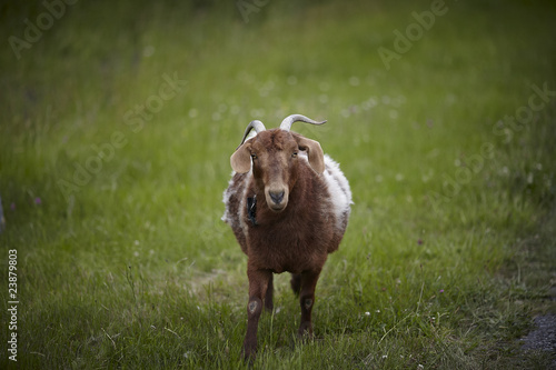 © sugar0607, Obraz premium male brown goat with horns in the meadow