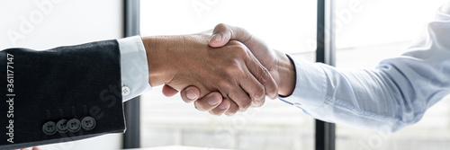 © Freedomz, Fototapeta premium Male candidate shaking hands with Interviewer employer after a job interview