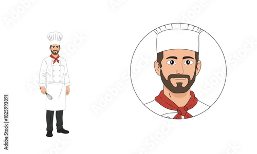 © Samiya , Obraz premium male chef character illustration with close-up portrait