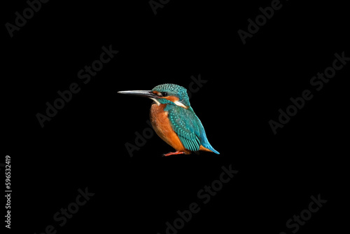 Fototapeta premium Male Common Kingfisher perching image with black background.
