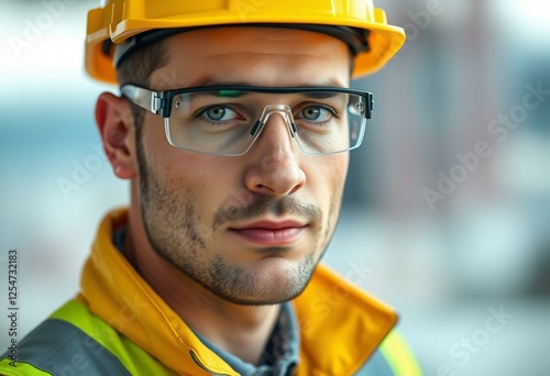 © iushakovsky, Fototapeta premium Male constructor worker on a construction site