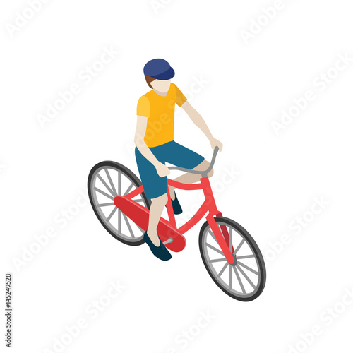 Fototapeta premium Male cyclist riding on a bicycle. Flat 3d isometric vector illustration