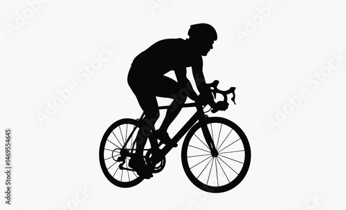 Fototapeta premium "male cyclist silhouette, road bike rider, sporty biking pose, helmeted man...