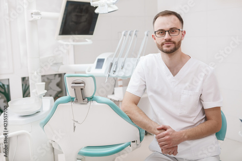 © Ihor, Obraz premium Male dentist at his dental clinic, copy space