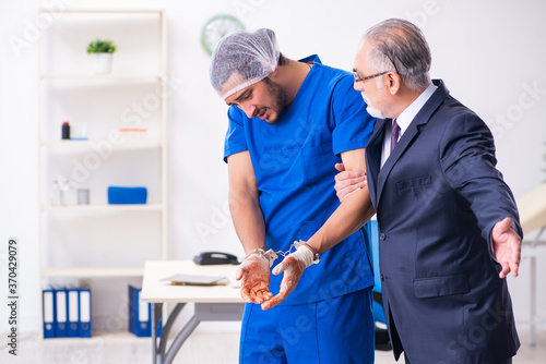 Fototapeta premium Male doctor in courthouse meeting with advocate