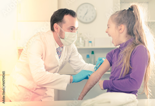 Obraz premium Male doctor injecting little patient