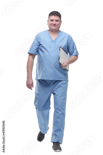 © ASDF, Fototapeta premium male doctor with a clipboard . isolated on a white