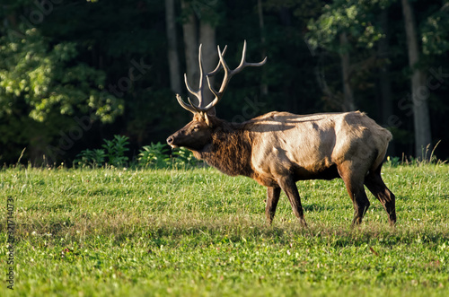 © Michael, Naklejka premium Male elk in the fall of the year during rutting season in late day sun. PA is home to the largest free roaming elk herd in Northeastern United States. They can be heard bugling during the rut.