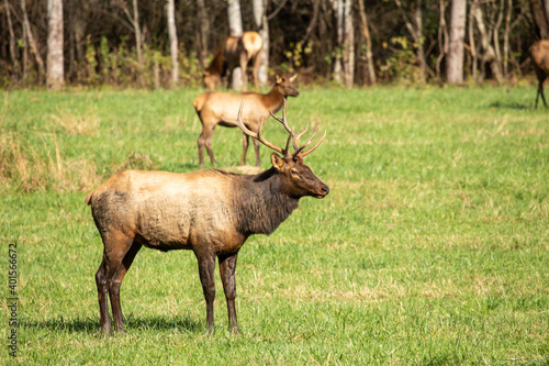 © Carol, Fototapeta premium Male Elk With Female Behind Him In Smoky Mountains