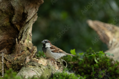© Leoniek, Obraz premium Male Eurasian House Sparrow Passer domesticus common perching bird on a tree stem