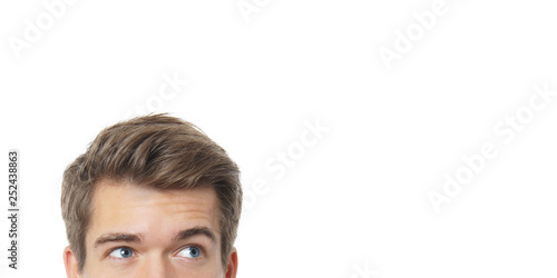 Fototapeta premium male eyes looking up towards copy space