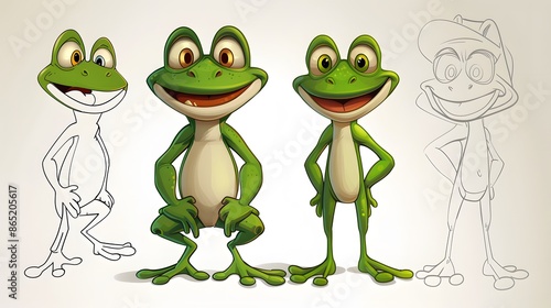 © Farid, Obraz premium Male frog cartoon character mascot design, including flat and line art design, isolated on white background, vector clip art illustration.
