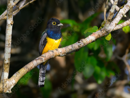 Fototapeta premium Male Gartered Trogon sitting on tree branch