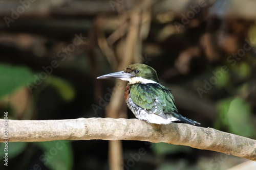 © donyanedomam, Naklejka premium Male green kingfisher (Chloroceryle americana) perched on a tree