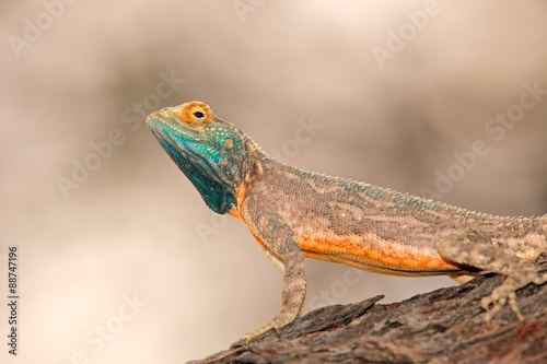 © EcoView, Naklejka premium Male ground agama (Agama aculeata) in bright breeding colors, Kalahari desert, South Africa.