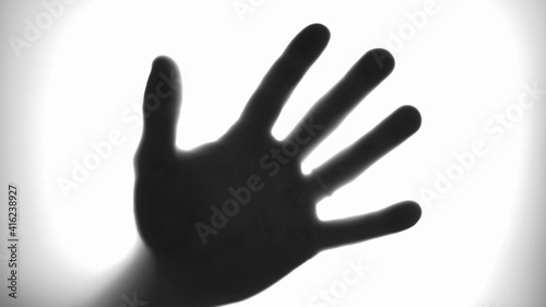 Fototapeta premium Male Hand Behind Translucent Glass Touching Scratching and Stroking the Surface