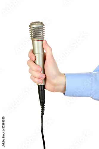 © Africa Studio, Obraz premium Male hand with microphone isolated on white