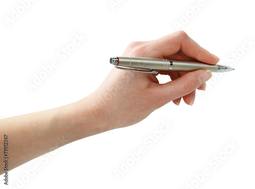 © Africa Studio, Naklejka premium Male hand with pen isolated on white