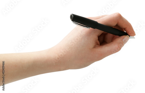 © Africa Studio, Naklejka premium Male hand with pen isolated on white