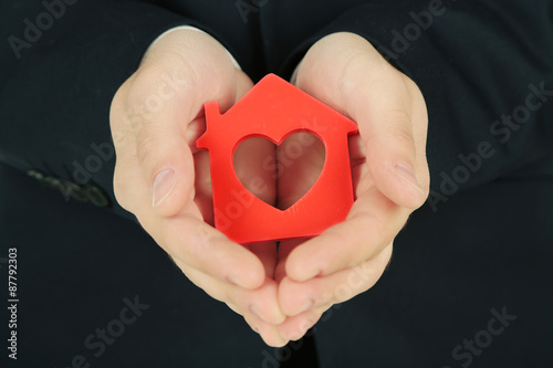 Fototapeta premium Male hands with model of house, closeup