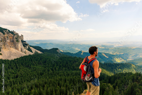 Naklejka premium Male hiker on mountain top