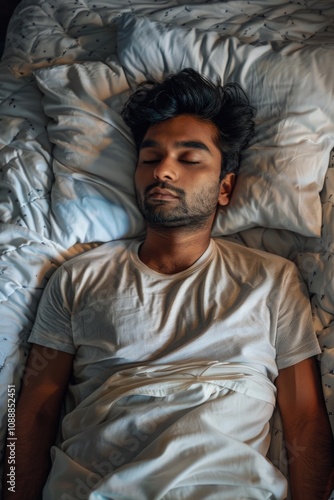 © Oleg, Obraz premium Male in bed resting with eyes closed.