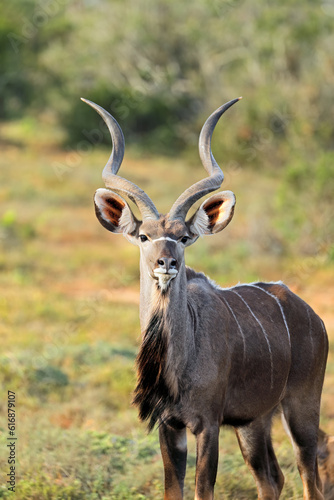 Fototapeta premium Male kudu antelope (Tragelaphus strepsiceros) in natural habitat, Addo Elephant National Park, South Africa.