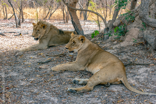 © mirecca, Fototapeta premium Male lion and female lion.Africa