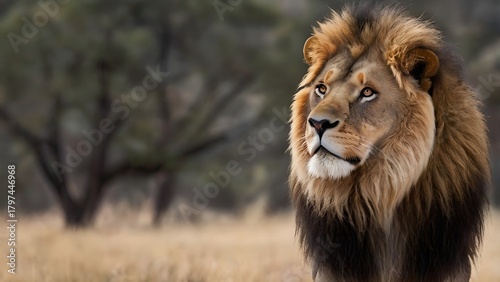 Obraz premium male lion in the wild,“Male Lion Standing Isolated on portrait Background”