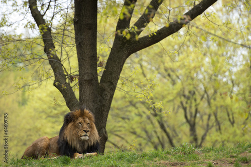 © Andrea Izzotti, Naklejka premium male lion on forest savana background
