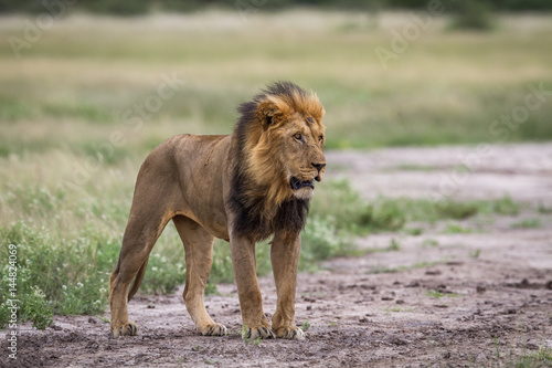 © simoneemanphoto, Naklejka premium Male Lion standing on dirt.