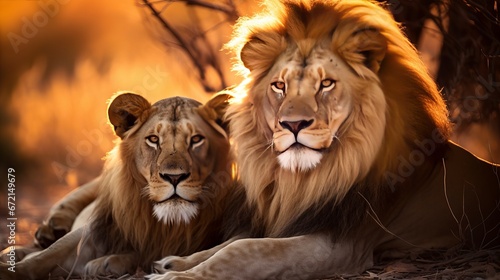 © Elchin Abilov, Fototapeta premium Male lions resting on the ground