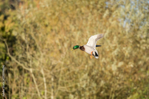 Obraz premium Male Mallard feet up coming into land.