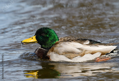 © FotoRequest, Obraz premium Male Mallard with Reflection Swimming, Closeup Portrait