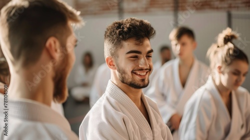 © Julia Jones, Fototapeta premium Male martial arts student in dojo. Selective focus lifestyle photography.