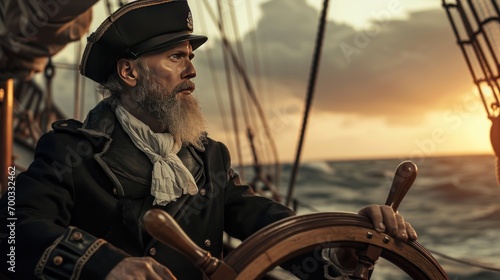 © Bijac, Fototapeta premium Male model as a Victorian-era ship captain, seafaring and exploration.