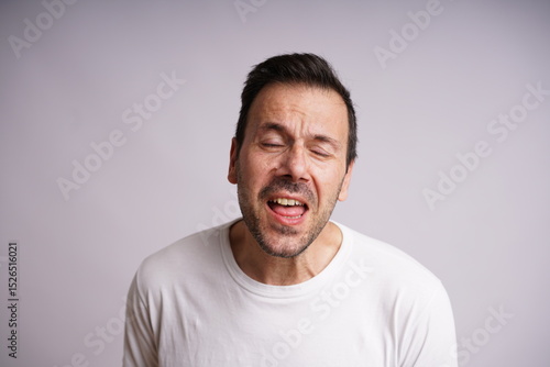 © Artframe , Obraz premium Male Model Showing Different Emotions on White Studio Background
