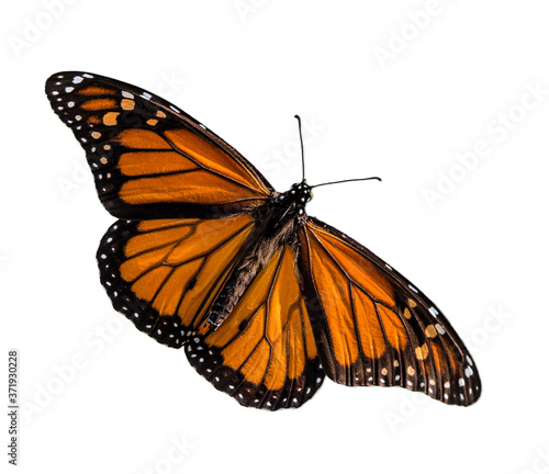 Fototapeta premium Male Monarch butterfly (Danaus plexippus) wings open isolated on white...