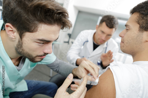 © auremar, Obraz premium male nurse doing injured man tetanus toxoid injection