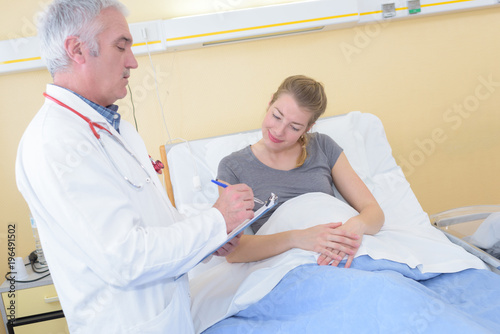 © auremar, Fototapeta premium male nurse inspecting the pregnant patient