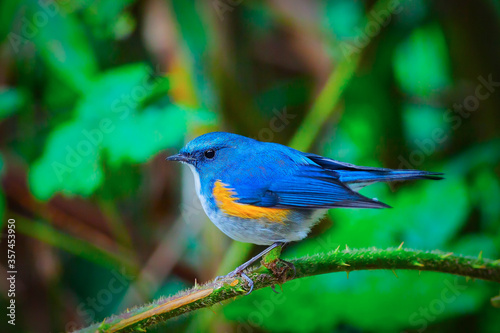 © tanoochai, Fototapeta premium Male of Himalayan Bluetail or Orange-Flanked Bush Robin (Tarsiger rufilatus)
